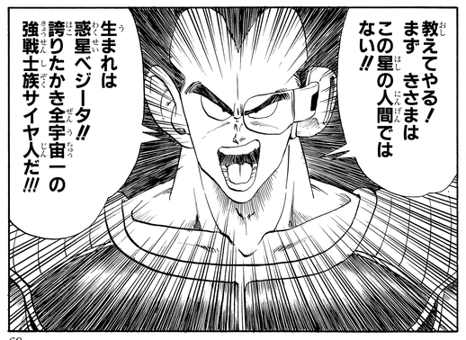 Ayant enfin trouvé Goku, qui rendait visite à Kame House à l'époque, Raditz révèle à son frère qu'il n'est pas un Terrien mais en fait un Saiyan nommé "Kakarot".
