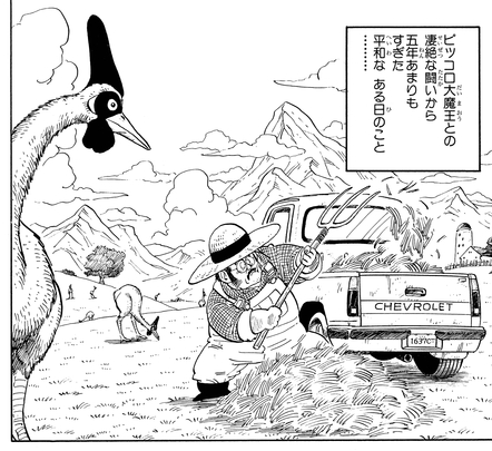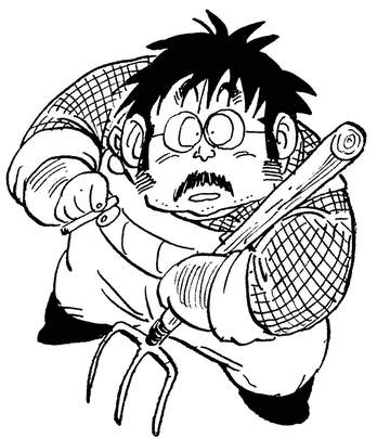 Le fermier est moqué par Raditz pour sa faiblesse alors qu'il méprise, "Power Level... seulement cinq. Quelle planète!" Mais étant donné que dans les arcs Android et Cell , le Power Level' un jeune Trunks était également de 5, ce fermier est en fait assez dur pour un Terrien ordinaire !