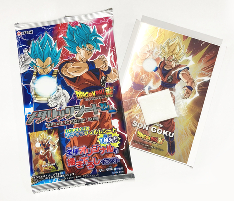 "Dragon Ball Super Metallic Sheet Gum " sont des paquets de chewing-gums qui viennent avec des feuilles métalliques avec de superbes motifs Dragon Ball !