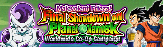 La "Malevolent Frieza! Final Showdown on Planet Namek Worldwide Co-Op Campaign" est lancée ! Participez à l'événement "Extreme Z-Area Planet Namek Saga" et terminez les étapes pour contribuer au décompte global et terminer les missions ! Chaque fois que le nombre clair atteint certains objectifs, le rang de la mission coopérative augmentera. En plus des récompenses que vous obtiendrez pour chaque rang, si les joueurs atteignent le rang le plus élevé de la campagne, vous pouvez obtenir des pierres de dragon, un fond d'écran « Showdown on Planet Namek» et d'autres récompenses impressionnantes ! Utilisez la force combinée des guerriers Dokkan du monde entier pour tous les éliminer !