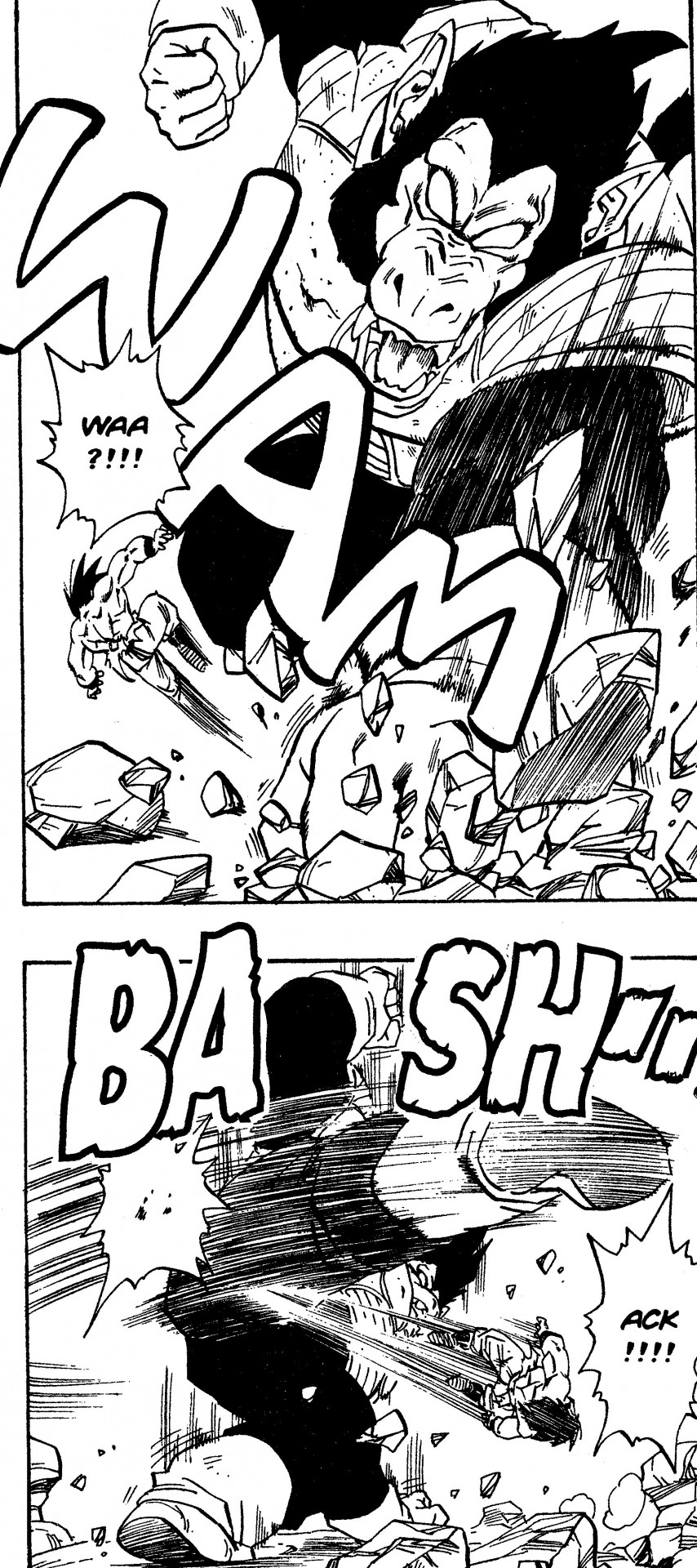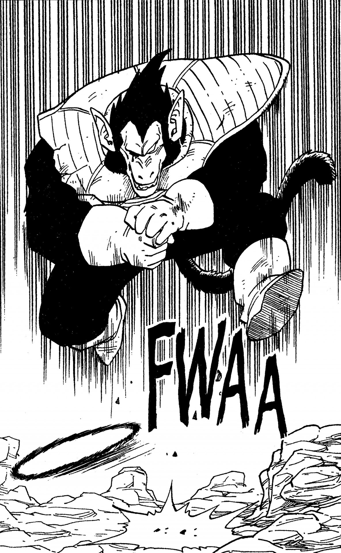 Commençons donc par l'hypothèse que lorsque Vegeta transforme en Great Ape, sa taille quadruple à peu près. Sa taille normale est de 163 cm, donc pour obtenir la taille du grand singe, nous la multiplions par 4 pour obtenir 6,52 m. En regardant le manga et en comparant le Great Ape de Vegeta et les objets en arrière-plan, cela semble être un chiffre raisonnable.