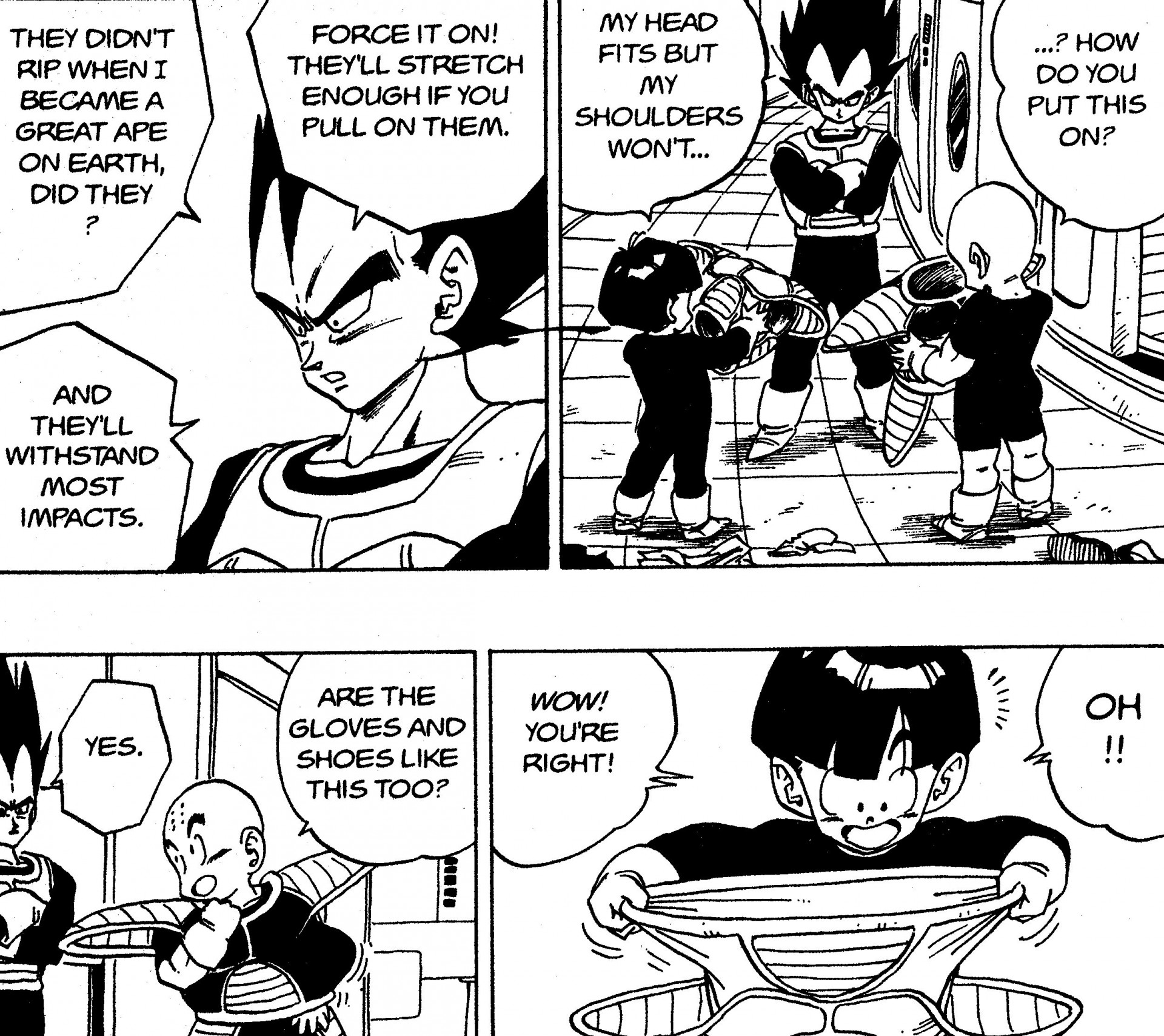 Donc, pour l'armure de combat de Vegeta, si elle n'avait pas ces niveaux d'élasticité après la transformation du Great Ape , il ne serait pas en mesure de se battre très efficacement.