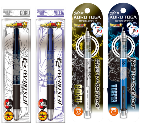 Le stylo tout usage qui offre une expérience d'écriture fluide à chaque fois, le "JETSTREAM 2&1", et le porte-mine conçu pour une précision qui ne s'émousse jamais, le "KURU TOGA", tous deux sont disponibles dans des versions incroyables Goku et Vegeta !!