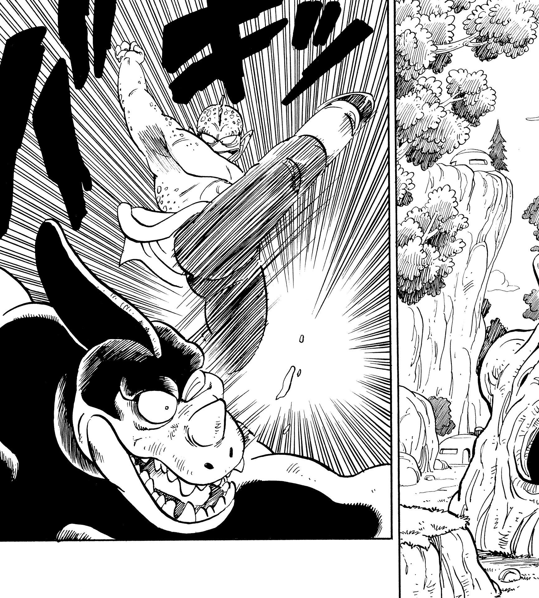 Et voila! Soit dit en passant, il y a environ 2 300 km à vol d'oiseau entre le Red Ribbon Army Headquarters et le Karin Sanctuary. Pouvez-vous croire que Taopaipai a pu aller jusqu'ici en chevauchant ce pilier ? Folie...