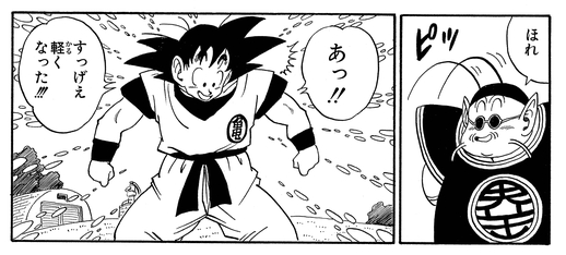 D'un simple mouvement de ses antennes, Kaio a pu créer un uniforme léger mais durable à porter par Goku.