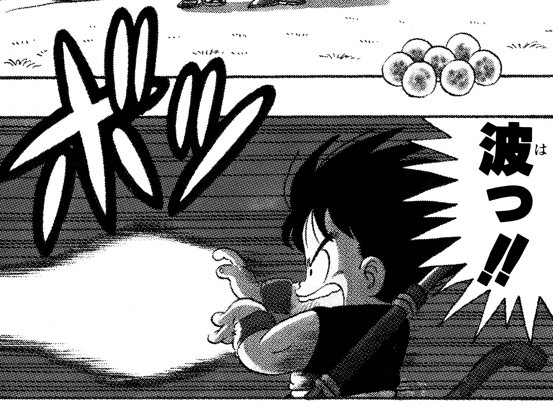 ・Conte 270, page 5 : Goku tire un Kamehameha lors de son entraînement sur le vaisseau spatial à destination de la Planet Namek.