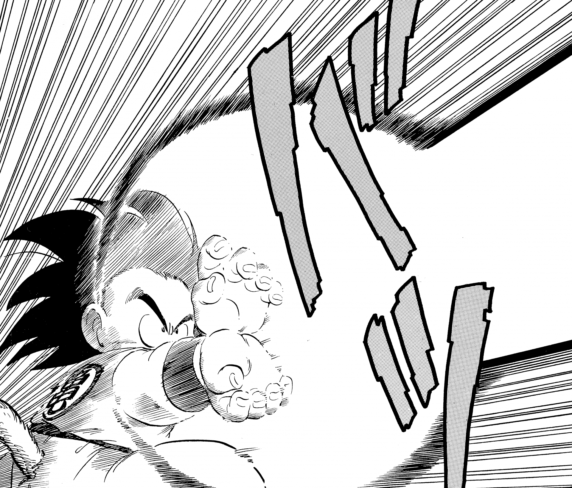 ・Conte 126, page 6 : Goku tire un Kamehameha comme moyen de manœuvrer contre Krillin.