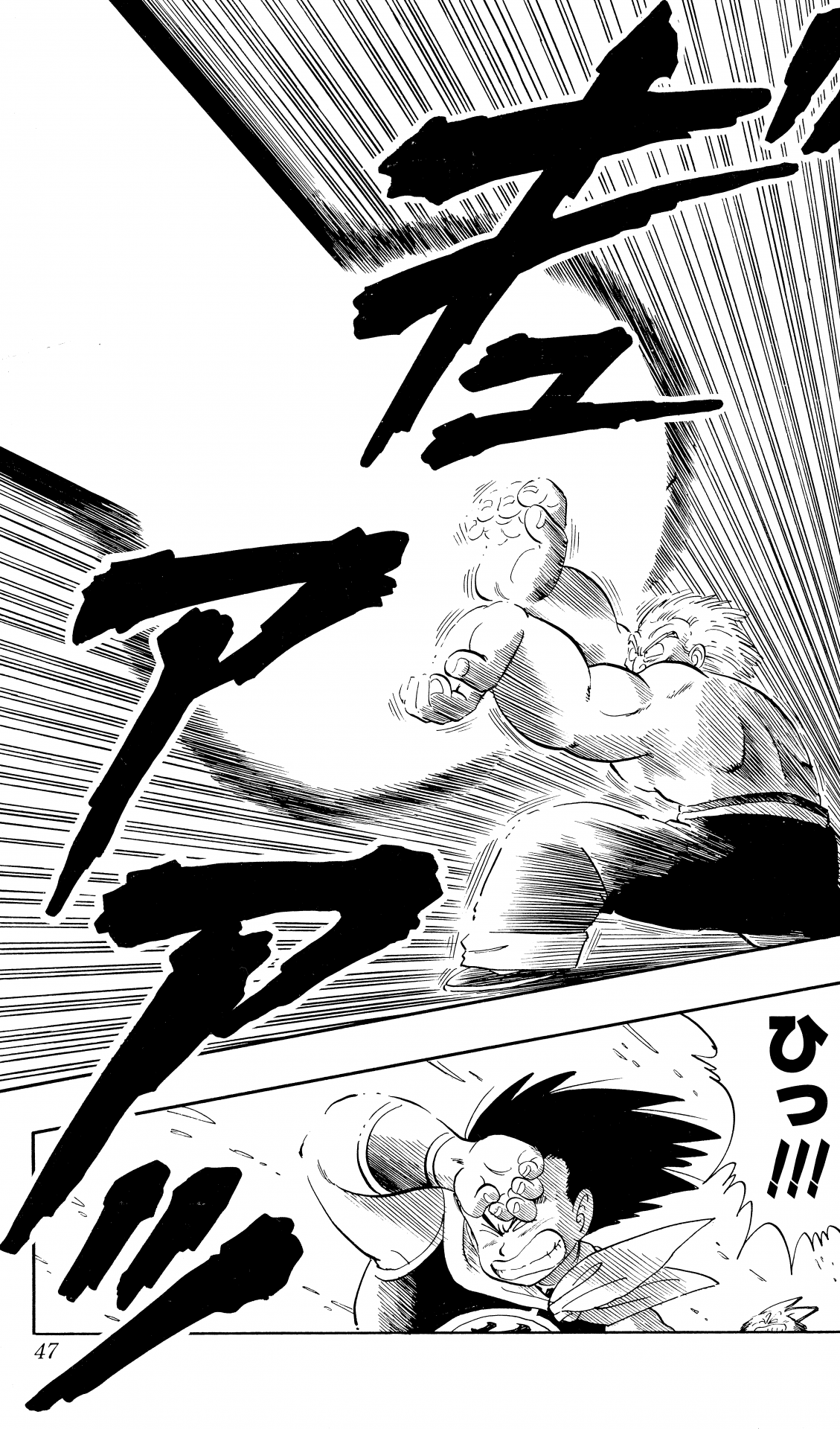 ・Conte 107, page 5 : Goku tire sur grand-père Gohan au Uranai Baba's Palace.