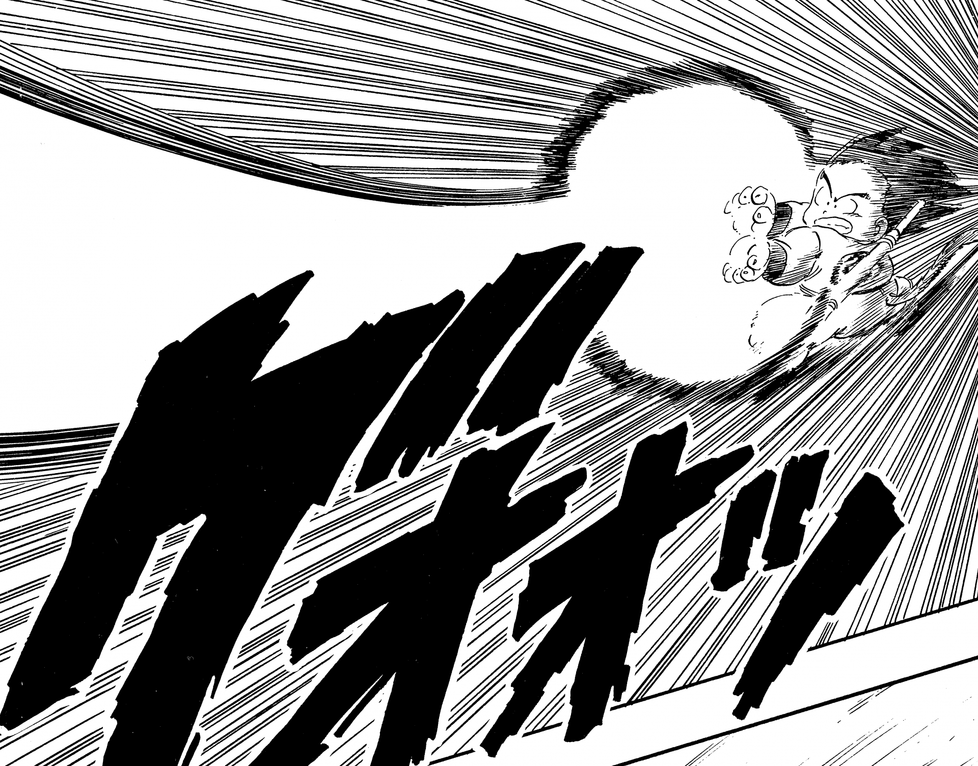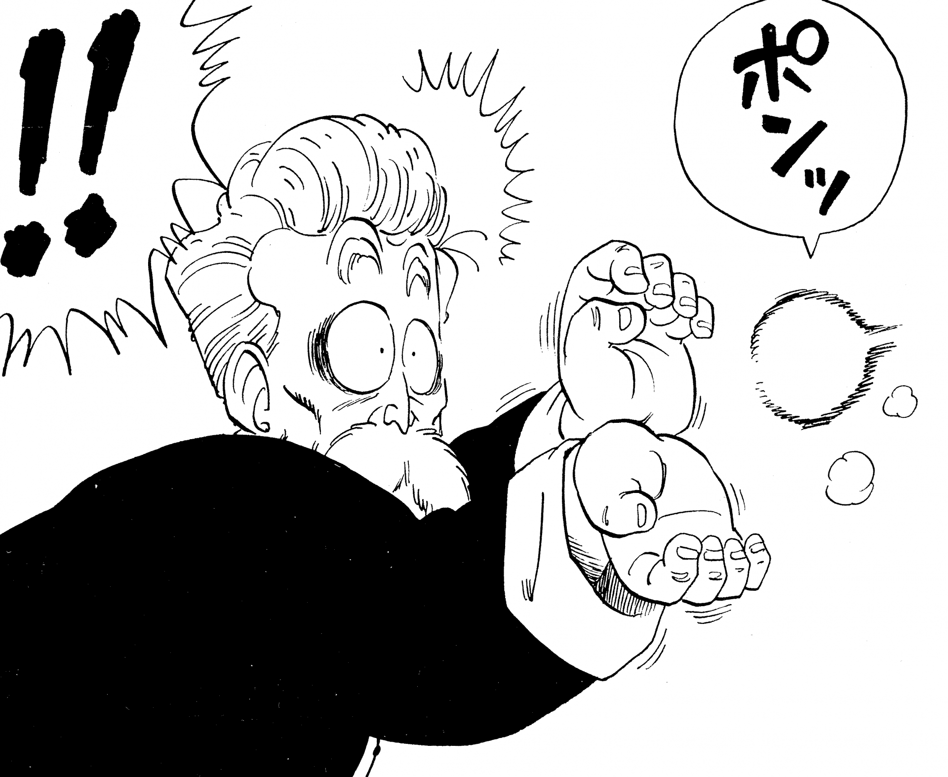 ・Conte 106, page 13 : Grand-père Gohan tire sur Goku au Uranai Baba's Palace.