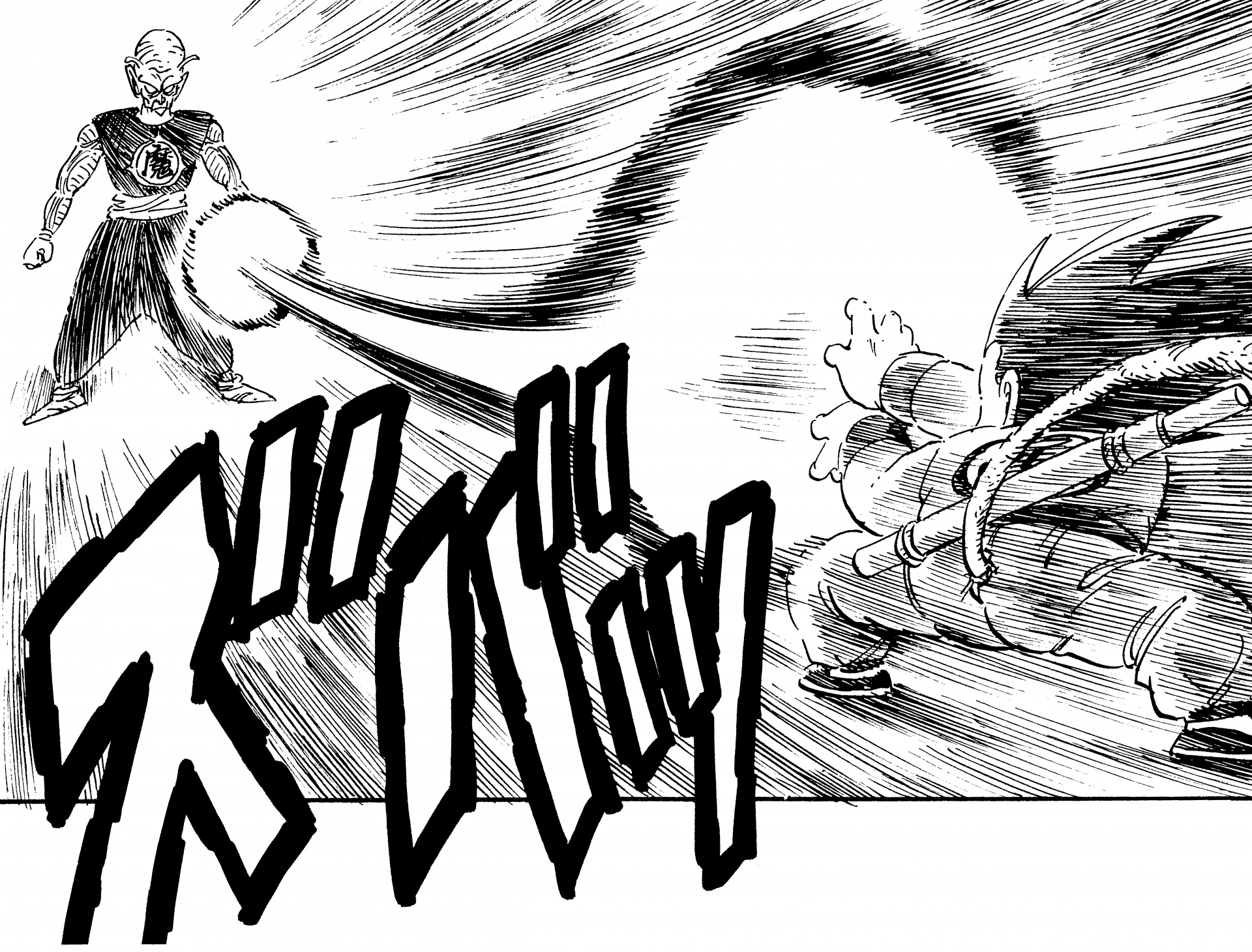 ・Conte 157, page 9 : Goku tire sur le Great Demon King Piccolo au King Castle.