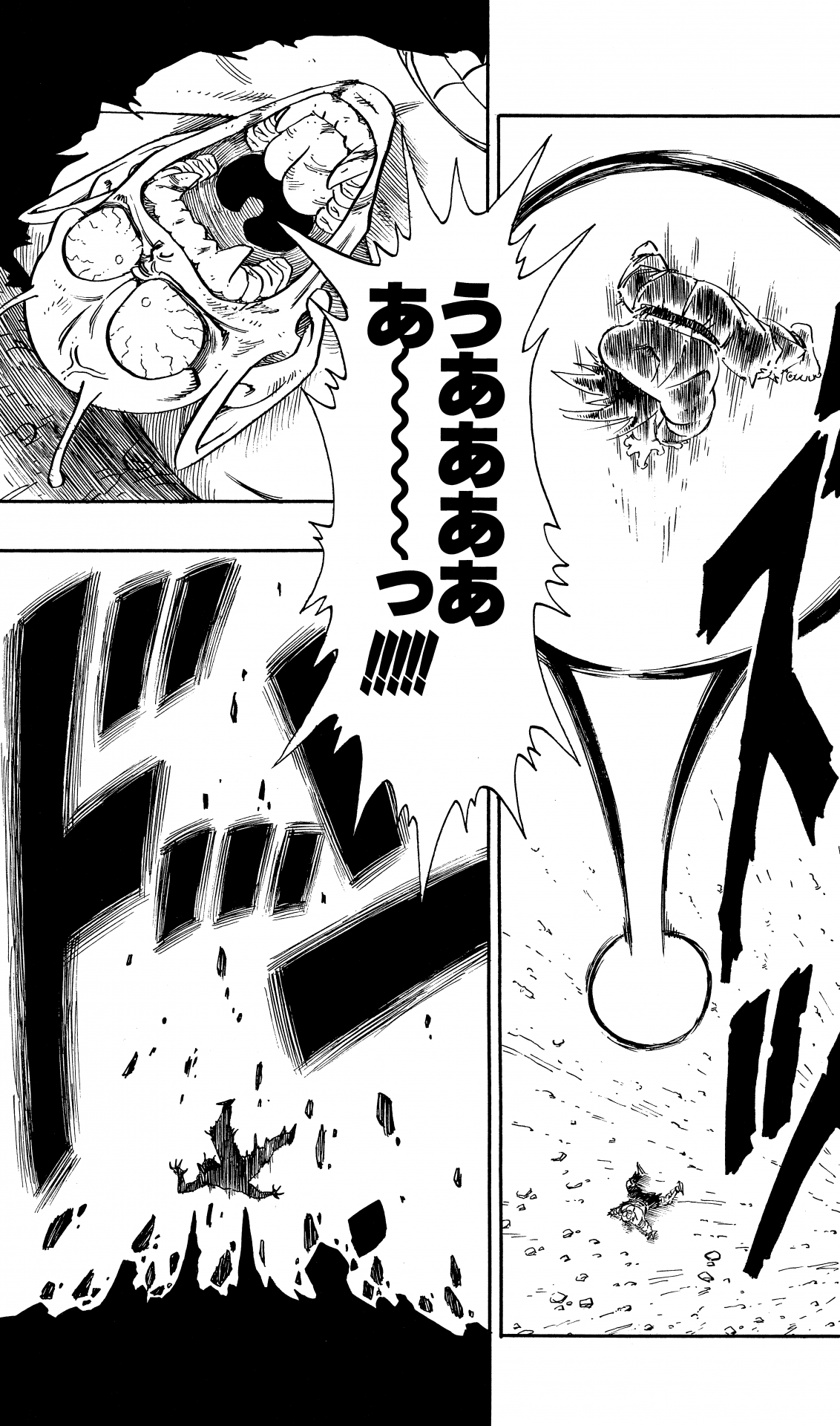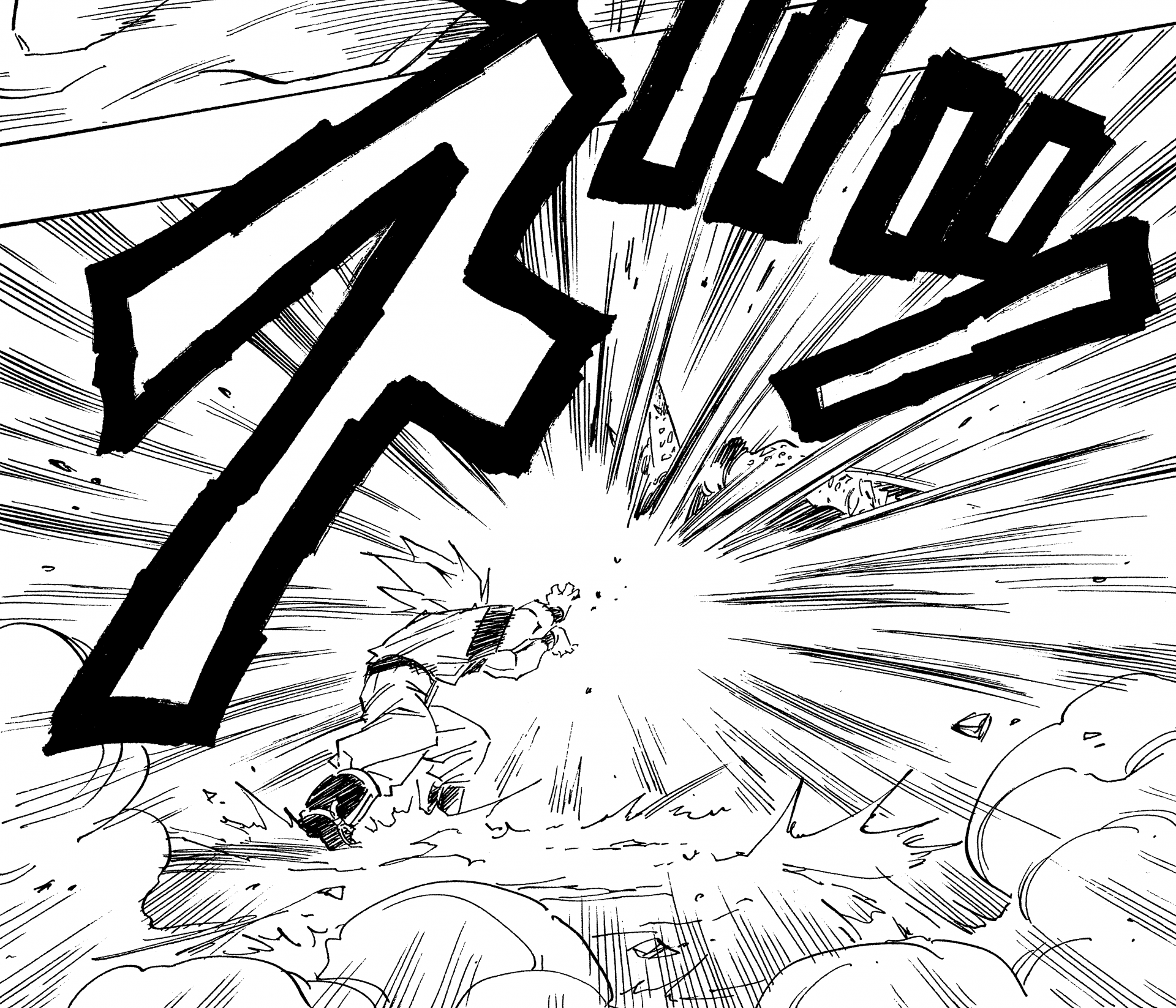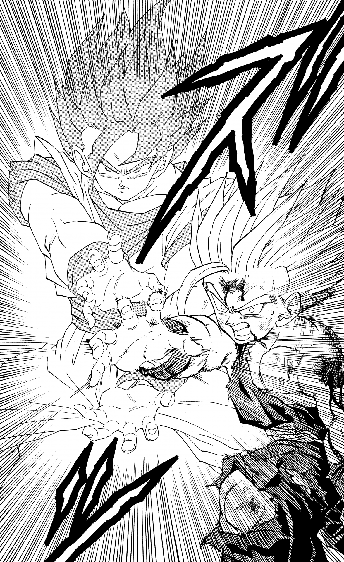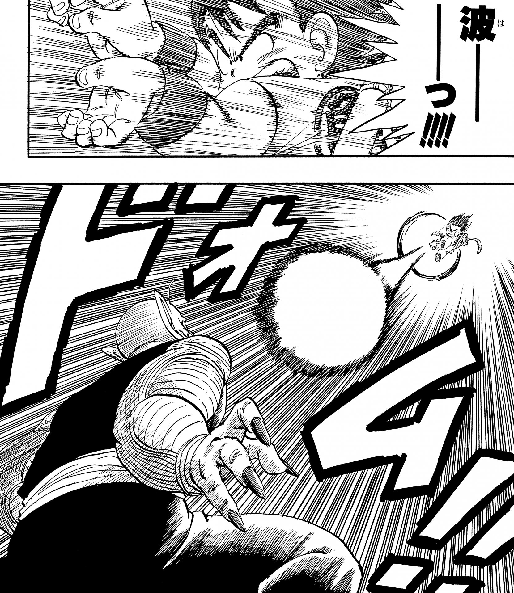 ・Conte 410, page 12 : Gohan tire son propre Kamehameha en réponse au Kamehameha de Cell dans les Cell Games.