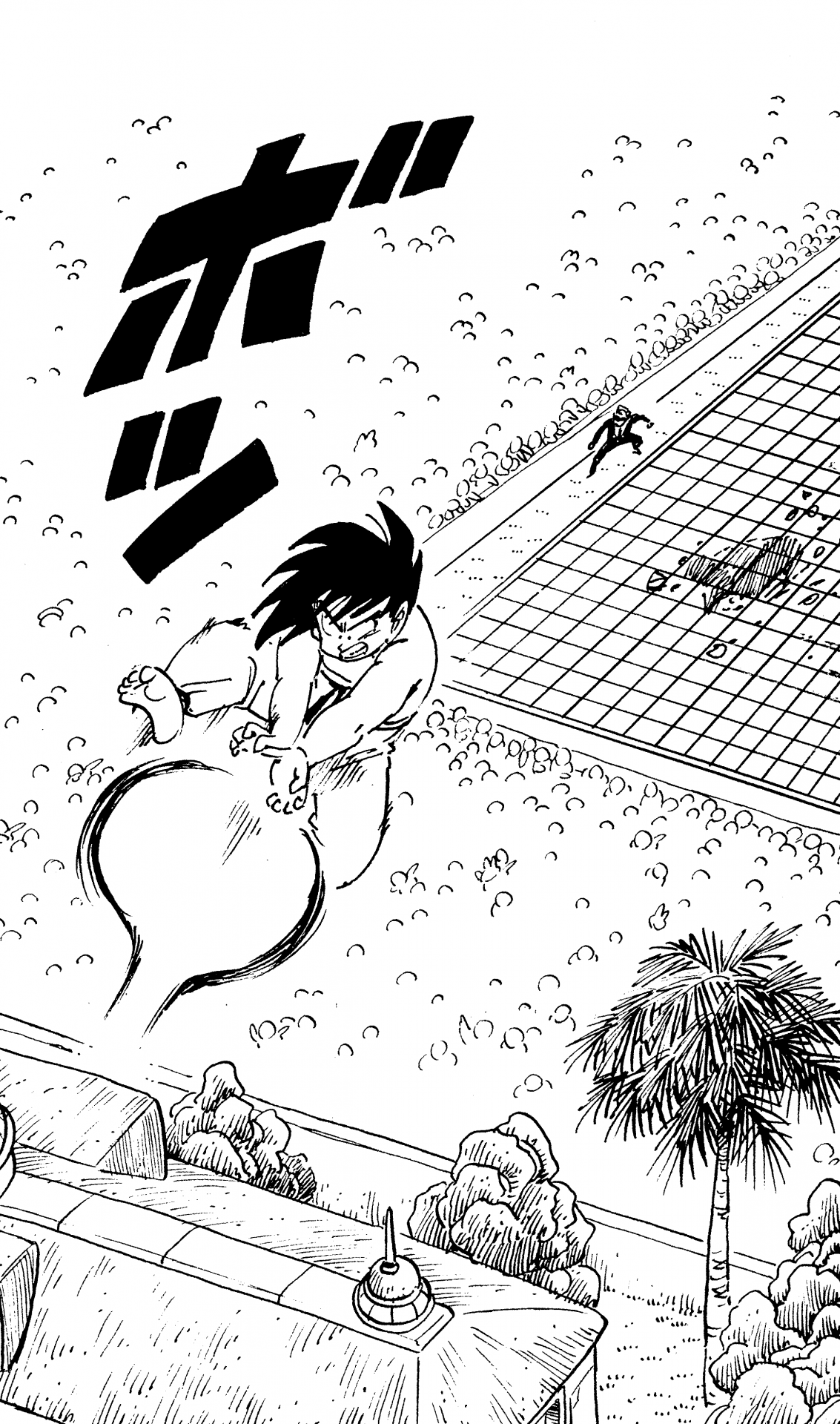 ・Conte 131, page 4 : Goku tire un Kamehameha sur le Tenkaichi Budokai pour s'empêcher d'atterrir hors des limites.
