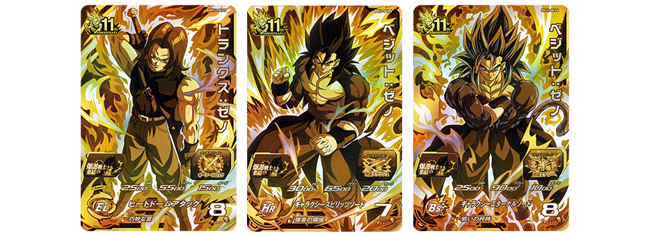 Il y a aussi deux explosions du passé pour le set du 11e anniversaire : Trunks: Teen et Vegeta du premier set de Dragon Ball Heroes, qui rejoignent la gamme en tant que cartes UR commémoratives !