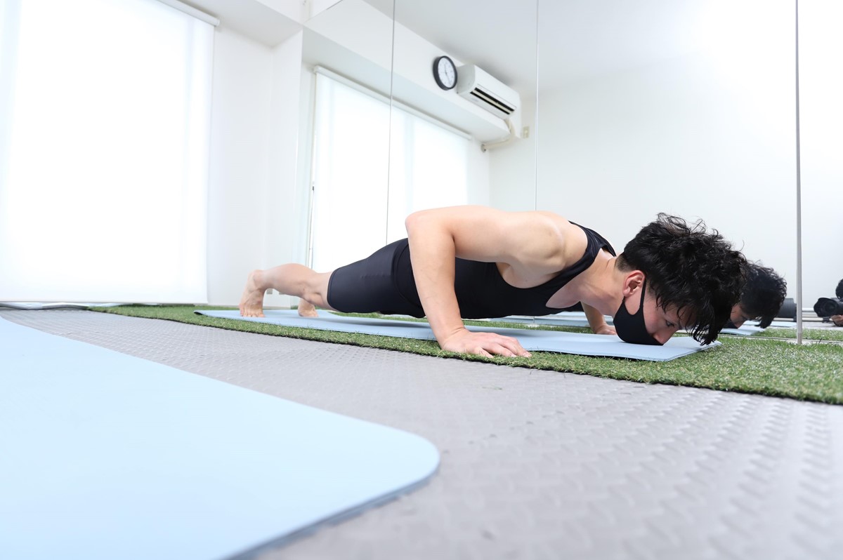 3. Abaissez la poitrine juste au-dessus du sol, puis revenez à la position de départ.