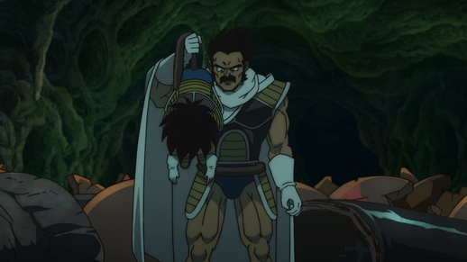 En apprenant l'amitié naissante de Broly avec son supposé partenaire d'entraînement et monstre vicieux, Ba, Paragus fait sauter l'oreille de Ba juste devant son jeune fils, qui est profondément marqué par l'incident.