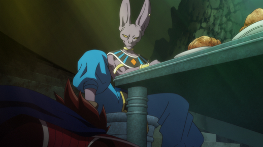 Afin d'extraire des informations sur le Super Saiyan God de Vegeta, Beerus fait une apparition non invitée à la fête d'anniversaire de Bulma. Cependant, il est rapidement distrait de sa tâche par la générosité de la délicieuse nourriture de la Terre qui y est servie et est submergé par sa délectation.