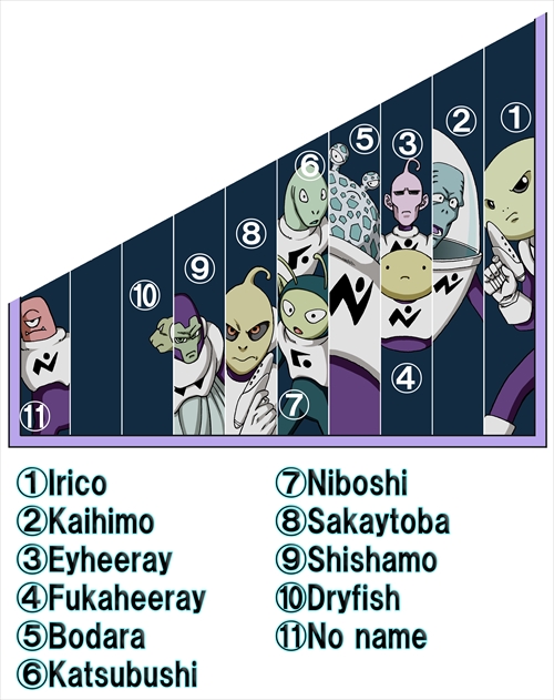 Pour la version anglaise des noms des membres de Galaxy Patrol révéléexclusivementdans cet épisode, ne cherchez pas plus loin que les images ci-dessous !