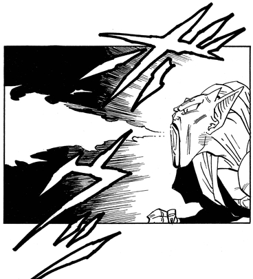 Pour cette attaque, Dabura lance une boule de feu brûlante de la paume de sa main.
