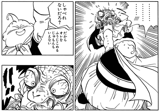 Babidi est ravi de Majin Buu faire un travail léger de Gohan, du Supreme Kai et même de Vegeta, mais son exaltation est interrompue lorsque la colère de Piccolo éclate et il coupe Babidi en deux.