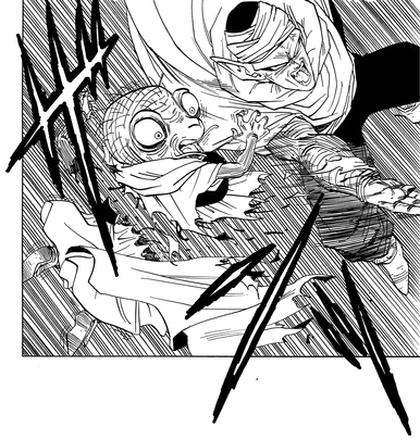 Verrouillant sa cible avec un regard féroce, Babidi force leur corps à se dilater rapidement jusqu'à ce qu'il éclate.