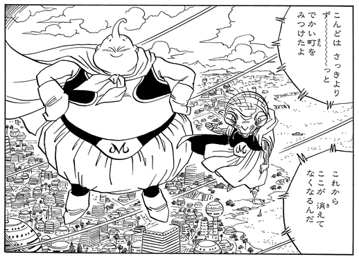 Majin Buu utilise son pouvoir pour faire revivre Babidi et le couple procède à l'anéantissement ville après ville, dans l'espoir de flairer Piccolo et les autres. Cependant, bombardé par les ordres implacables de Bibidi, Majin Buu commence à bouillonner d'une rage frustrée qui monte jusqu'à aboutir à ce qu'il se retourne contre son maître et le détruise.