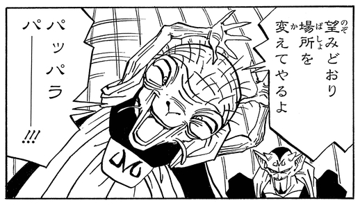 Babidi scande «Papparapa! et jette ce sort pour transformer le champ de bataille en un environnement de combat optimal pour ses subordonnés.