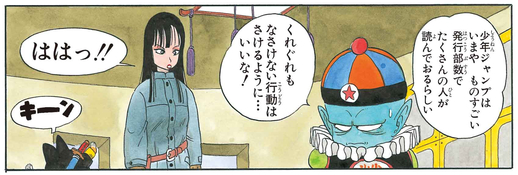 Pilaf gronde Mai pour un bâillon grossier qu'elle fait pendant que le gang recherche le dernier Dragon Ball, brisant le quatrième mur et disant que compte tenu des nombreux lecteurs de Shonen Jump, ils feraient mieux d'éviter de faire quoi que ce soit de honteux ou de scandaleux.