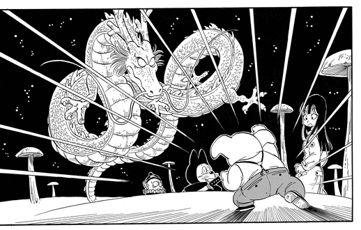Finalement, le trio ignoble parvient à mettre la main sur les sept Dragon Balls, permettant à Pilaf d'invoquer Shenron et enfin d'exaucer son souhait de domination mondiale - du moins le pensait-il ! Malheureusement pour le futur empereur de la Terre, Oolong fait irruption à la dernière seconde et vole le vœu pour lui-même !