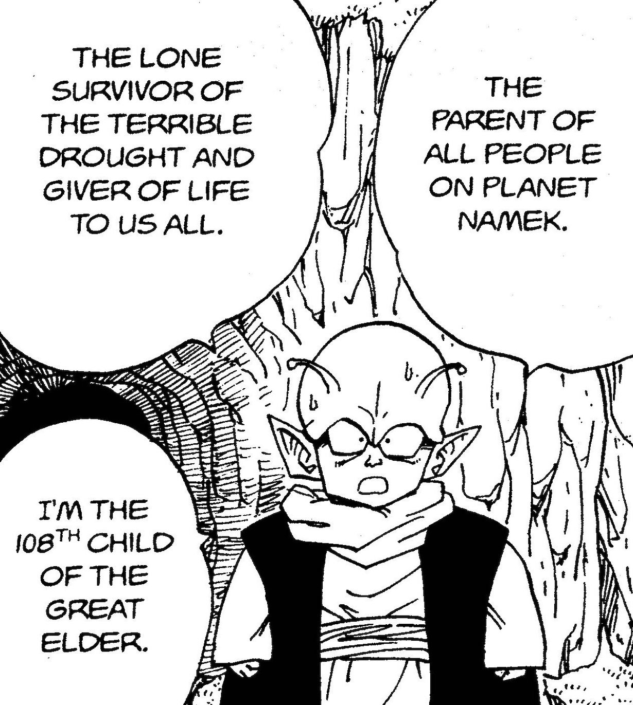 Tous les Namekiens actuels de la Planet Namek que nous connaissons sont issus d'œufs de Saichoro, n'est-ce pas ? N'est-ce pas incroyable ? Il y a tellement d'autres Namekiens matures, et pourtant ils ne se propagent pas. Biologiquement parlant, les Namekians pourraient être un exemple deune espèce où un seul membre d'un groupe est capable de se produire .