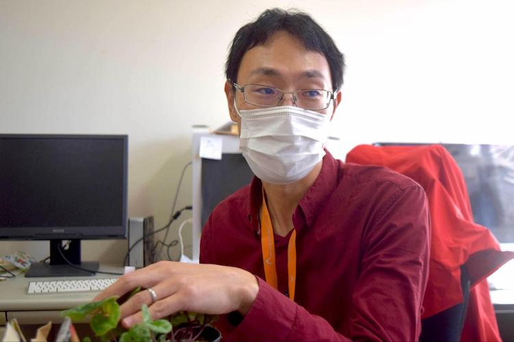 *Monsieur. Okuyama fait travailler sur ses recherches alors qu'il est entouré de la flore au jardin botanique de Tsukuba (Ville de Tsukuba, préfecture d'Ibaraki) !