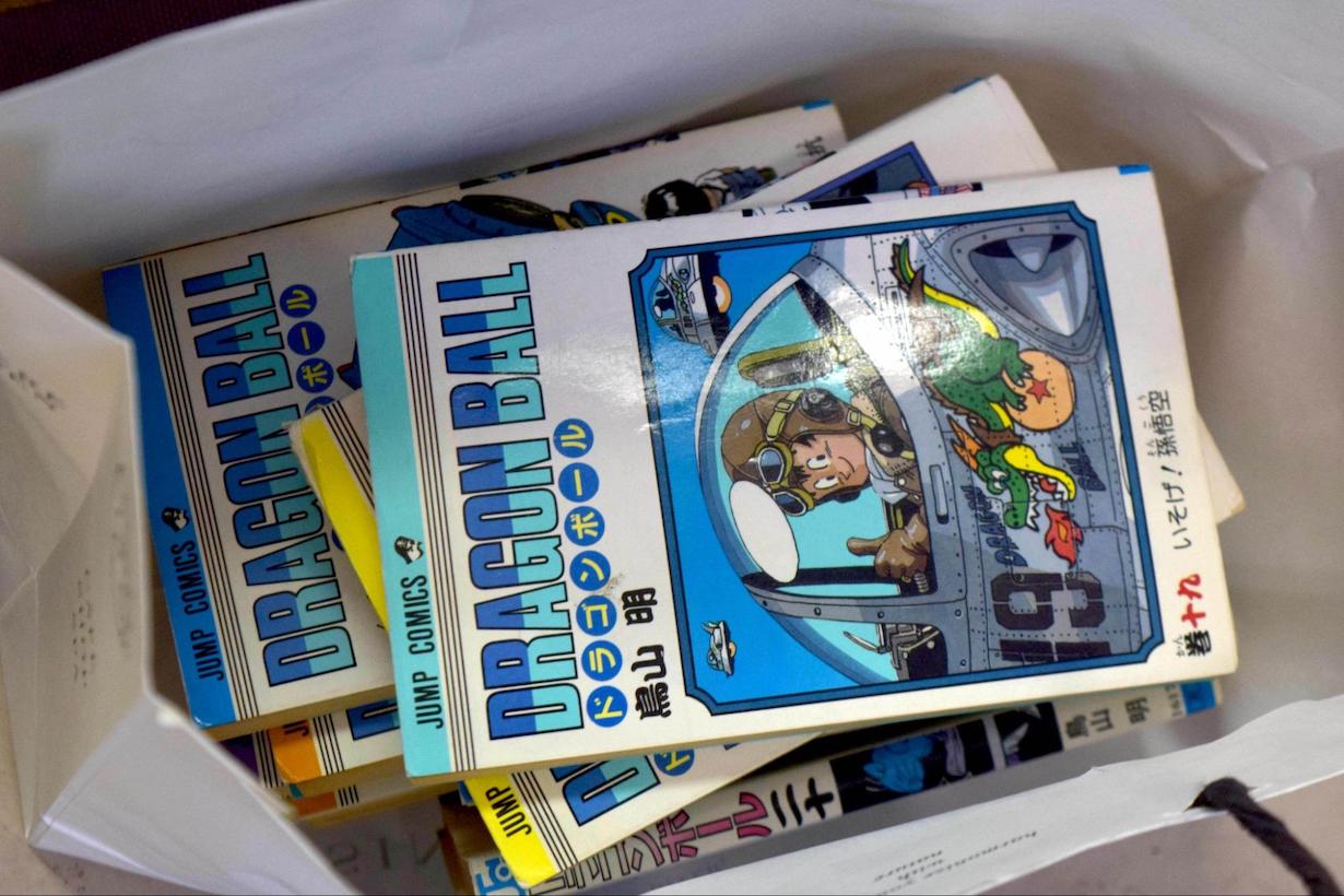 La collection de bandes dessinées personnelles de M. Okuyama qu'il a apporté le jour de l'entretien