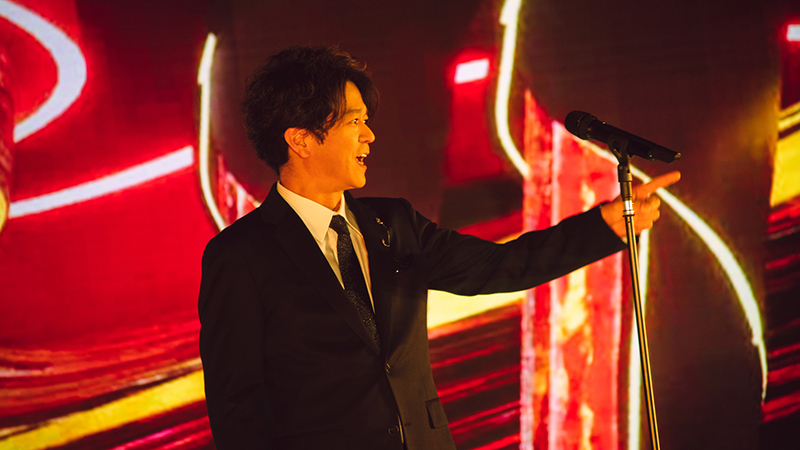 J'ai chanté Makafushigi Adventure pour la première fois quand j'étais dans la 20 ans, et c'est toujours la même qu'à l'époque , mais je pense peut-être qu'il y a un peu plus de maturité à ce maintenant ... Beaucoup de personnes le chantent encore au karaoké et ce genre de choses aussi, alors j'espère que quand ils m'ont entendu le chanter, ils pensent : "Ohh, c'est comme il le chante maintenant !"