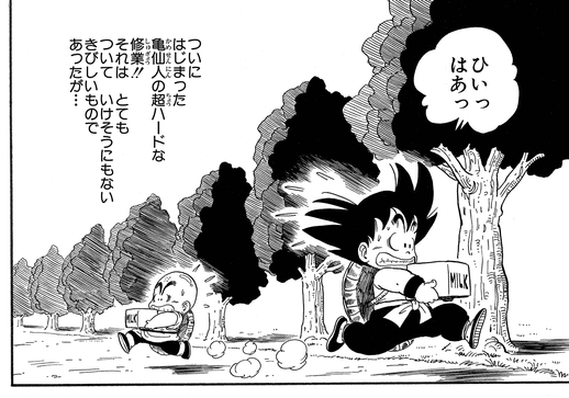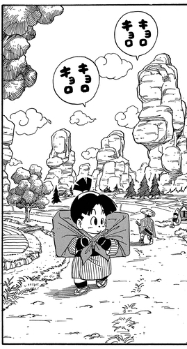 La façon dont il s'entraîne tout en aidant aux tâches quotidiennes rappelle la façon dont Goku et Krillin ont étudié avec Kamesennin dans les arts martiaux de la Kame School .