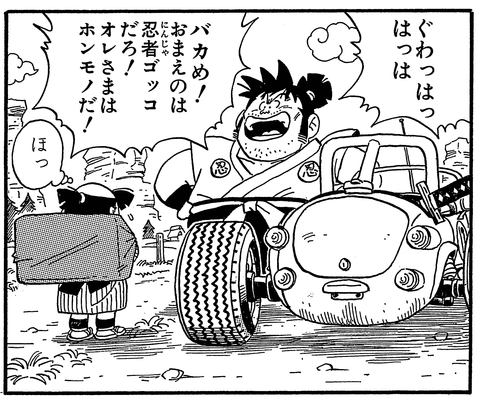 Sur la route, il rencontre un homme qui s'avère être un compagnon ninja !