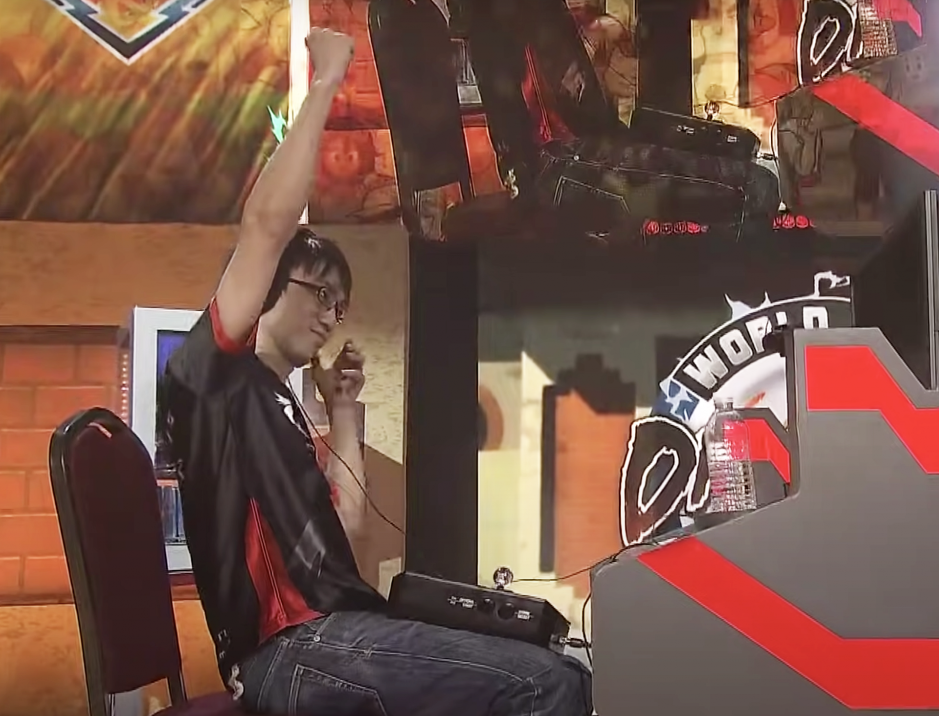 GO1 (à gauche) déchirant , ayant obtenu la victoire et et SonicFox (à droite) le félicitant .