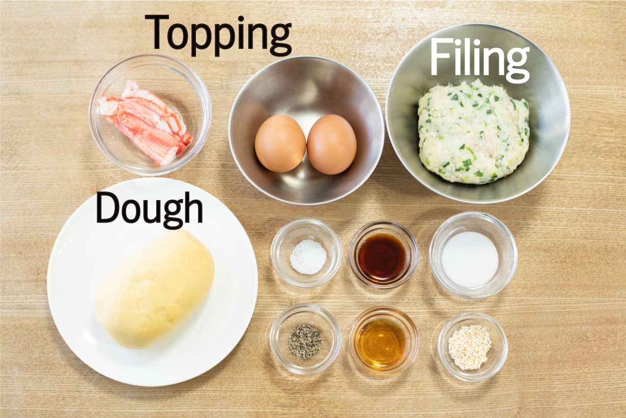 Mais bien sûr, je n'ai pas complètement oublié notre fidèle omelette au crabe. La pâte (en bas à gauche sur l'image) a en fait un petit secret : c'est une fusion de deux pâtes ! L'un est composé de farine à gâteau, d'œuf, de sel et de saindoux, et l'autre est composé de farine de riz et d'eau.