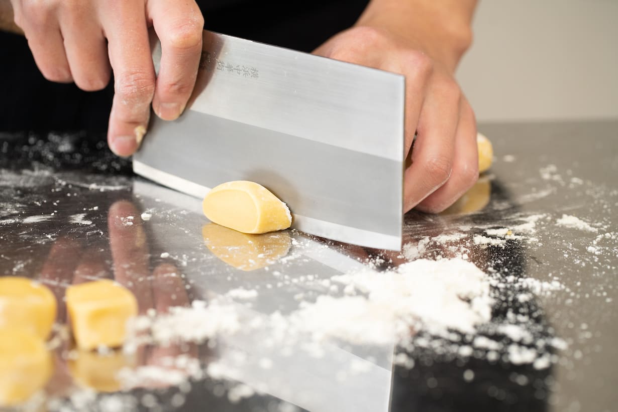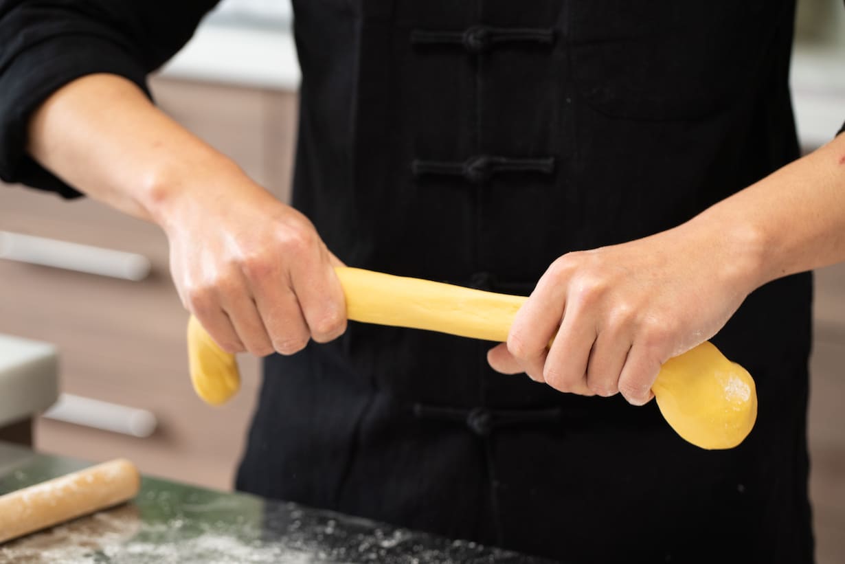 Couper la pâte étirée.