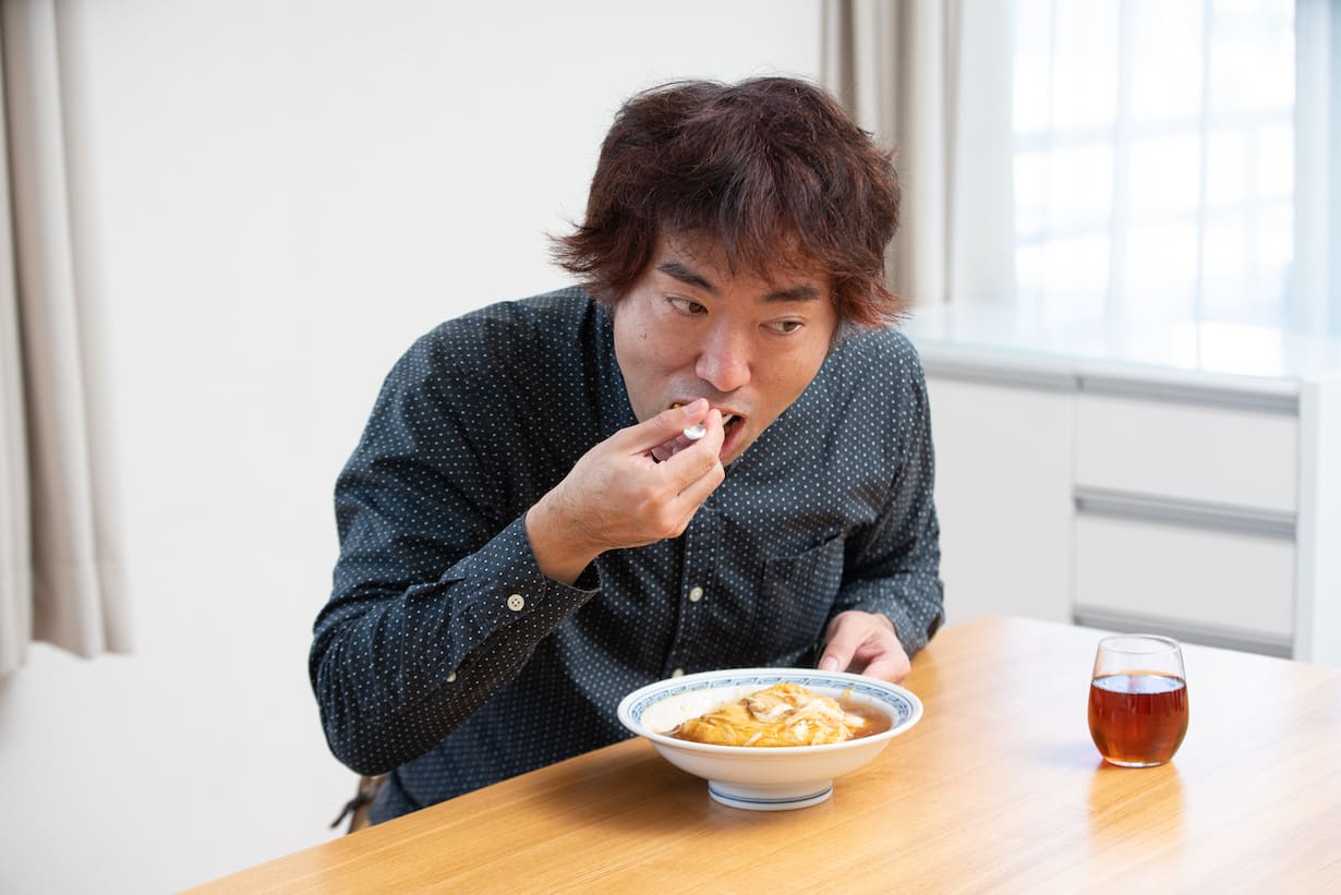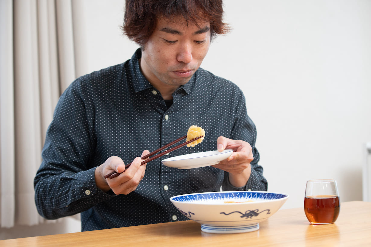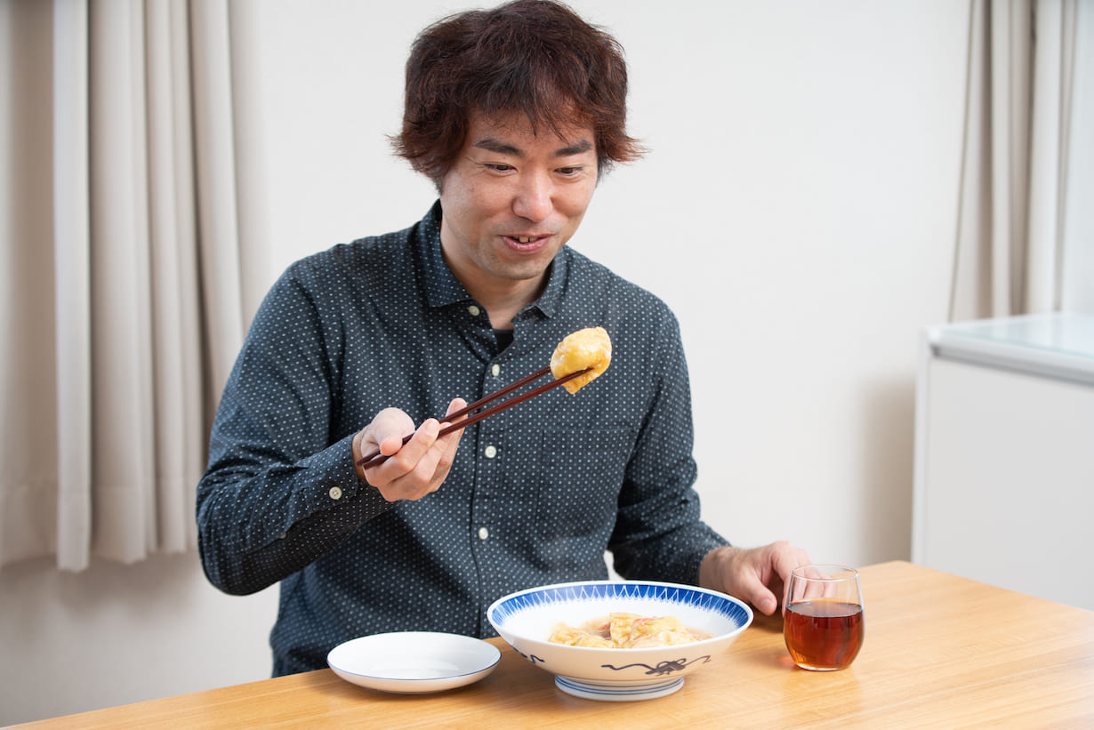 C'est vrai. Tenshinhan est tout au sujet de cette combinaison d'œufs et de riz, donc je voulais que vous puissiez ressentir cette sensation à l'instant où vous mordez dans mon Tsurusenhan.