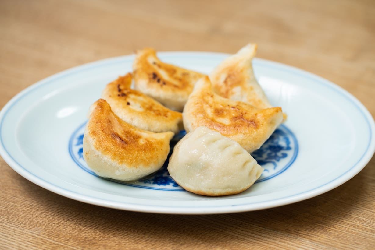 Le riz mochi absorbe les jus de la garniture de viande du jiaozi, vous obtenez une sorte de bouchée satisfaisante qui est différente d'un jiaozi ou tenshinhan typique.