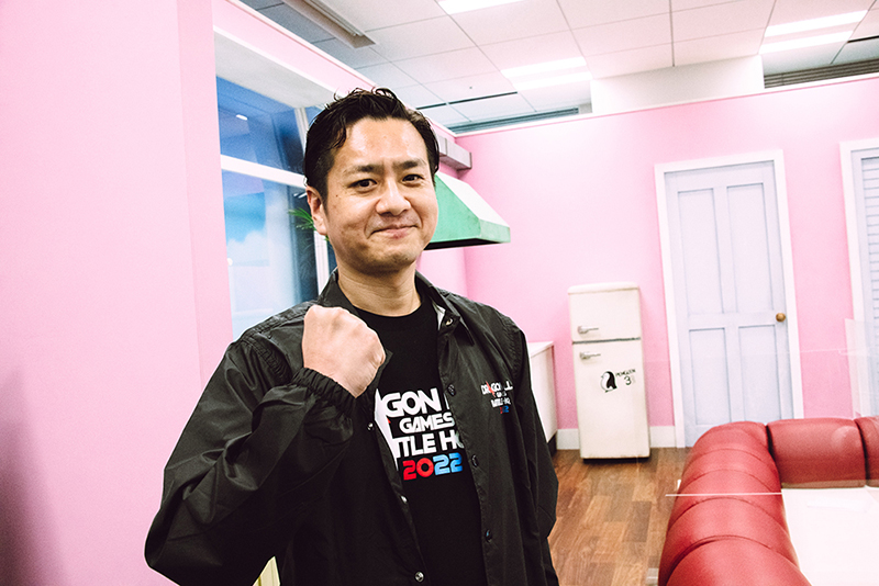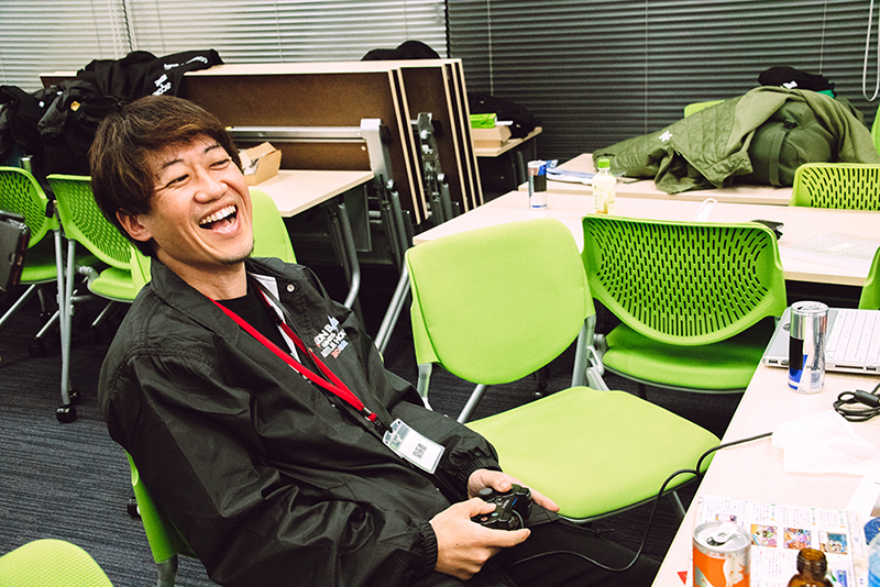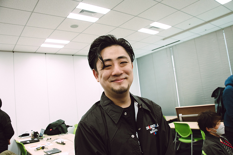 Le producteur de Dragon Ball Legends , TOSHI, est arrivé au studio tôt le matin à 8h30. Là, il a trouvé le créateur de Dragon Ball Z Dokkan Battle et Dragon Ball Legends, Tezuka, déjà absorbé par la pratique, bien qu'il ne soit pas prévu de jouer avant le JOUR 2.