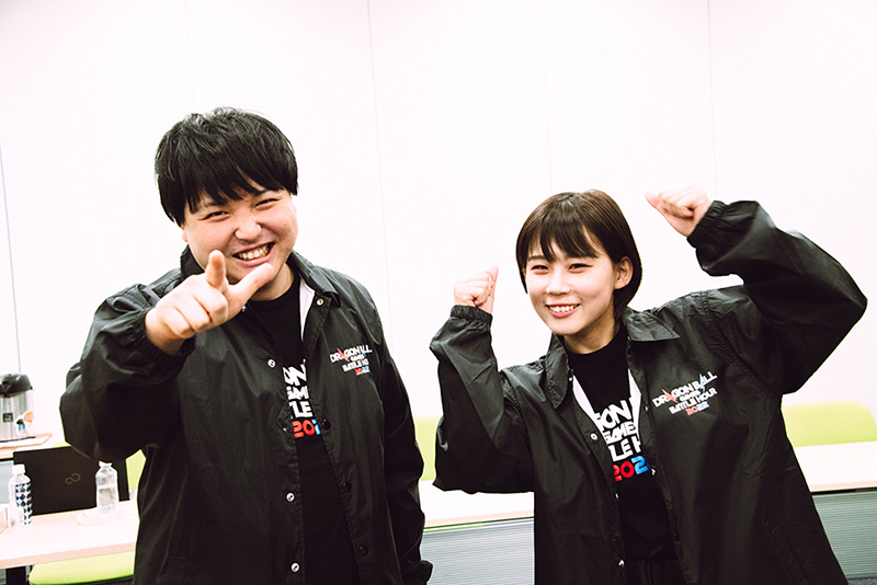 Un producteur rayonnant Mikumo (avant / producteur de Dragon Ball XENOVERSE 2) et Mito (arrière / producteur de Dragon Ball Z: Sparking et autres). Le producteur Hiroki et RYO ont avancé d'une étape avant de passer le relais.
