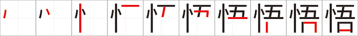 Ce kanji complexe signifie «connaître quelque chose» et «remarquer quelque chose», mais il contient également le sens de «saisir / comprendre la vérité». Il est souvent utilisé dans les noms japonais, en particulier avec la prononciation "Satoru".