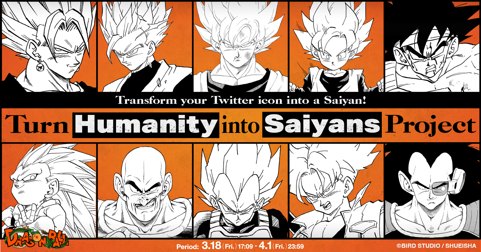 En liant votre compte Twitter au site de la campagne, votre icône changera automatiquement le 18 mars ! Les dix icônes possibles incluent Goku, Vegeta et une liste d'autres guerriers Saiyan, dont l'un sera appliqué au hasard à votre compte ! Assurez-vousde rejoindre la campagne pour voir quelle icône Saiyan vous obtiendrez ! Il est temps de prendre le contrôle de Twitter avec vos amis fans de Dragon Ball du monde entier !
