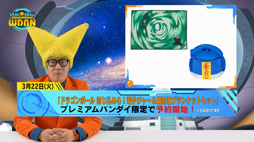 L'actualité de cette semaine met en lumière le "Dragon Ball - Seal Him Away! Electronic Jar & Mafuba Blanket Set", qui sera disponible en précommande uniquement auprès de PREMIUM BANDAI à partir du mardi 22 mars !