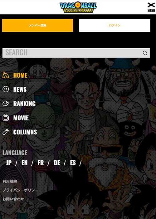 Dragon Ball Members, le système d'adhésion du site officiel de Dragon Ball , est enfin là ! Dans cet article, nous présenterons quelques-unes des nouvelles fonctionnalités impressionnantes du site auxquelles vous pouvez accéder en vous inscrivant en tantque membre de Dragon Ball .